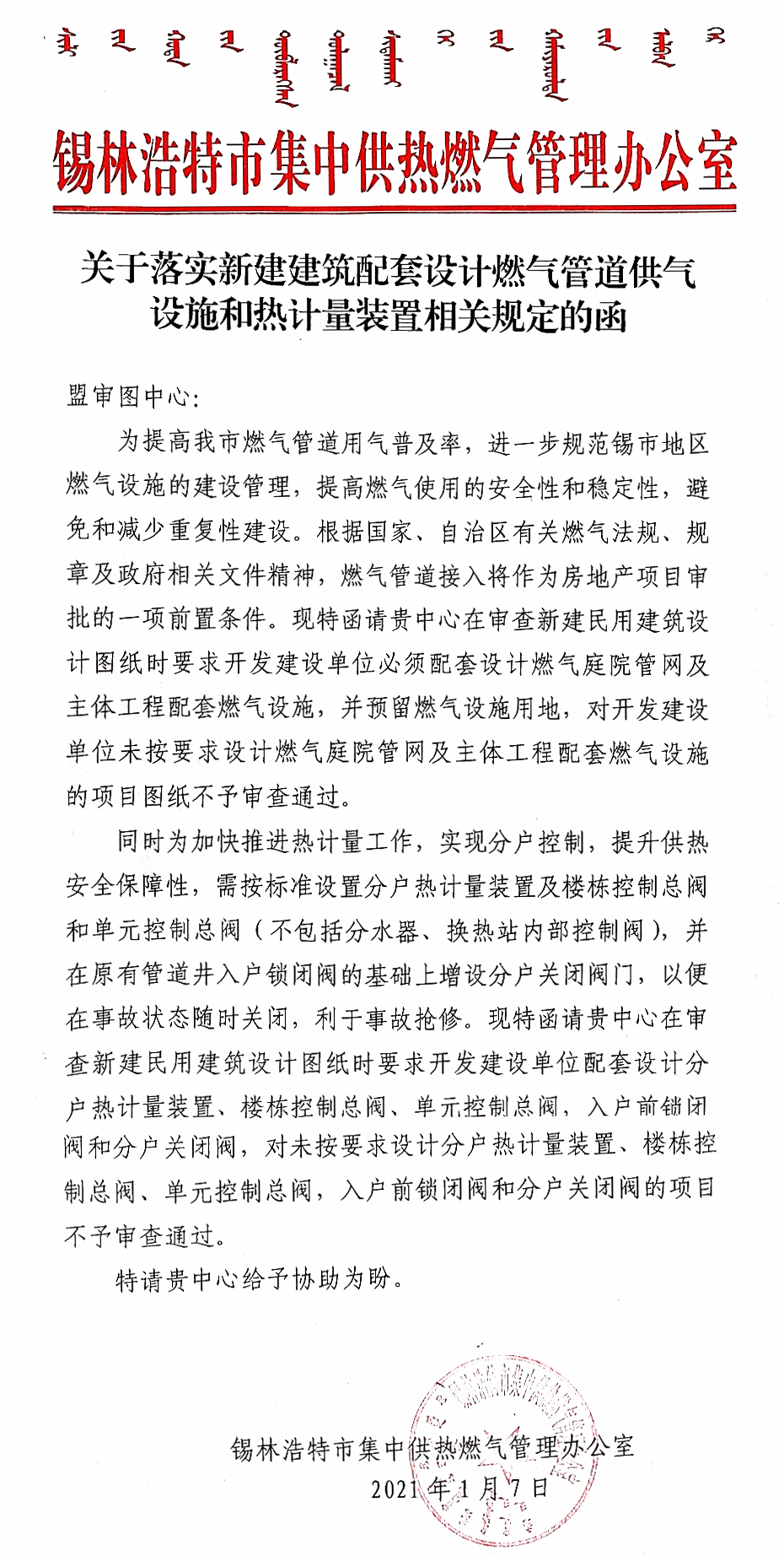 (錫供熱辦)關(guān)于落實新建建筑配套設(shè)計燃?xì)夤艿拦庠O(shè)施和熱計量裝置相關(guān)規(guī)